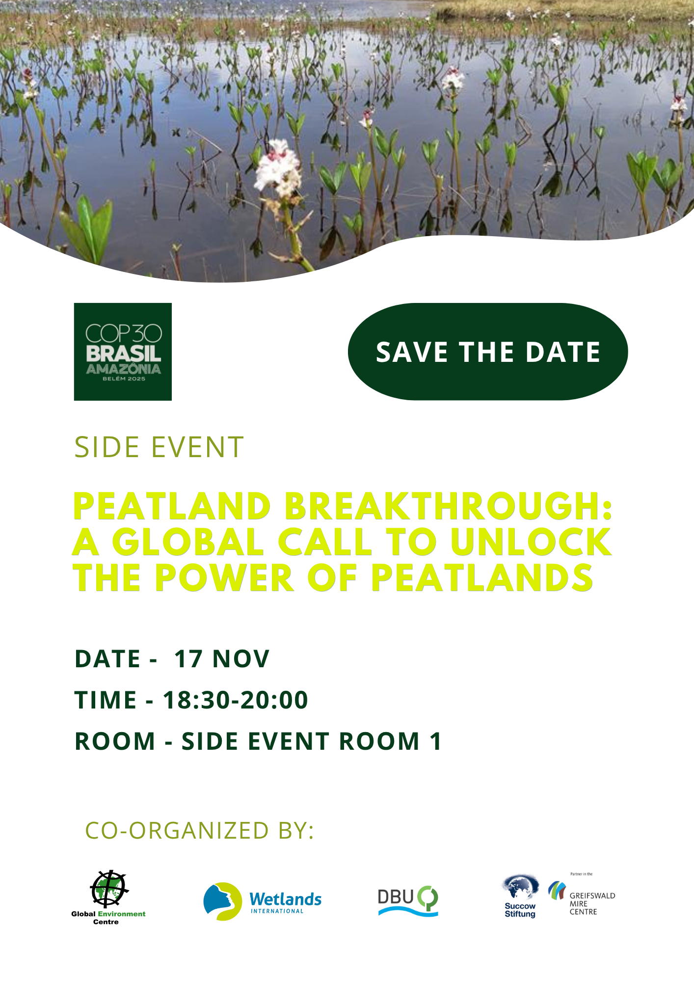 The session will highlight the growing coalition of Champion Countries and partners, showcasing how collective leadership and multi-sector partnerships can mobilize knowledge, policy, and finance for transformative peatland action. The discussion will build momentum and shared ownership of the Peatland Breakthrough, reaffirming peatlands as critical ecosystems for climate mitigation and adaptation, biodiversity, water security, and resilient livelihoods.