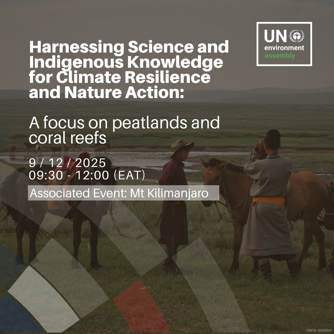 In the spirit of the UNEA-7 theme “Advancing sustainable solutions for a resilient planet” this event celebrates Indigenous leadership and local wisdom in restoring peatlands and coral reefs, and showcasing how science, culture, and collaboration can unite to drive lasting action for nature, people and planet.
